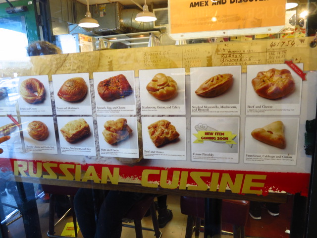 Piroshky Piroshky is a small place but with great food. You can always find it from the long lines waiting to bug piroshky is front of the store. The food is very good and can either make a good snack or a meal depending how many you want to eat!